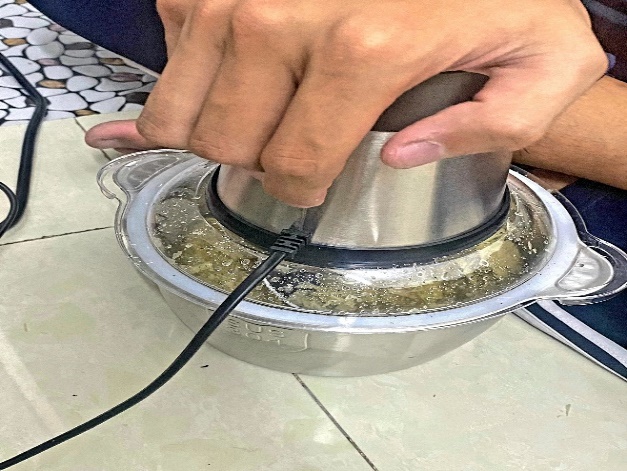• Bọc vải vào khung đã chuẩn bị trước, lọc hốn hợp qua lớp vải