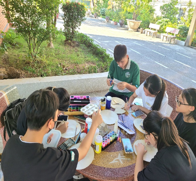 Nhóm Hs làm các sản phẩm thủ công từ giấy nảy mầm