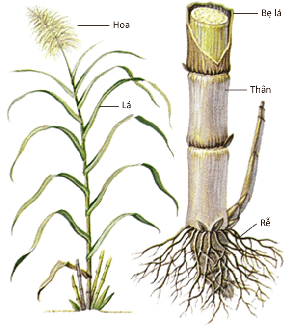 Cây mía bao gồm các bộ phận (hay các tổ chức) chính là: rễ, thân, lá, hoa và hạt. Mỗi bộ phận của cây mía đều có những chức năng riêng. Đối với sản xuất, chế biến, thân mía là đối tượng chủ yếu, là sản phẩm thu hoạch.