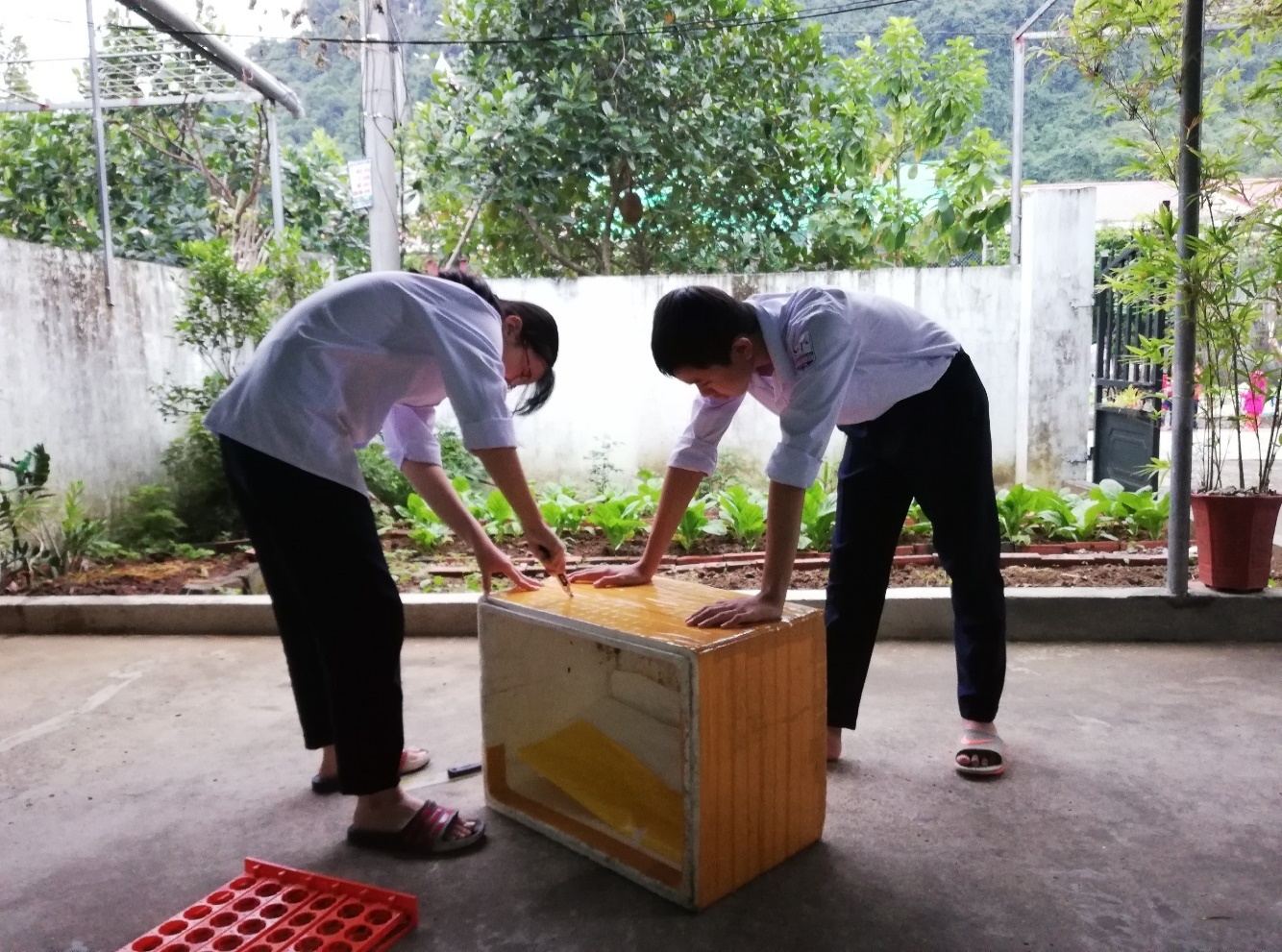 - Làm sạch thùng xốp, đục các lỗ nhỏ để trao đổi khí trong thùng và lắp quạt gió