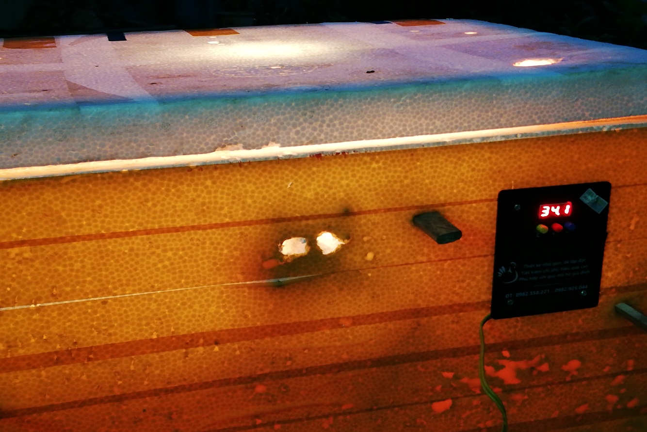 - Trước khi cho trứng vào thùng ấp ta chú ý cho thêm khay nước ở đáy thùng để đảm bảo độ ẩm cho thùng.