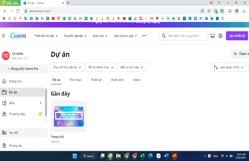 - Bước 1: Truy cập địa chỉ: https://www.canva.com/ đăng nhập bằng mail thực hiện dự án.