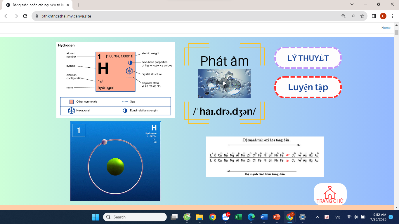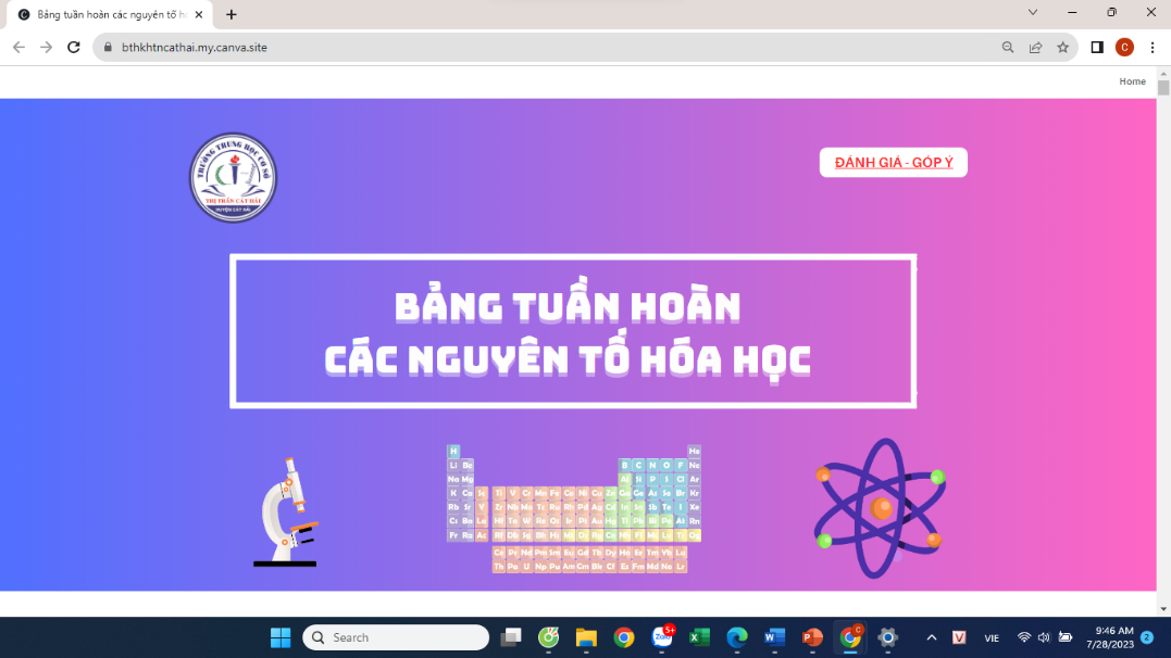 Thiết kế trang web Bảng tuần hoàn các nguyên tố hóa học